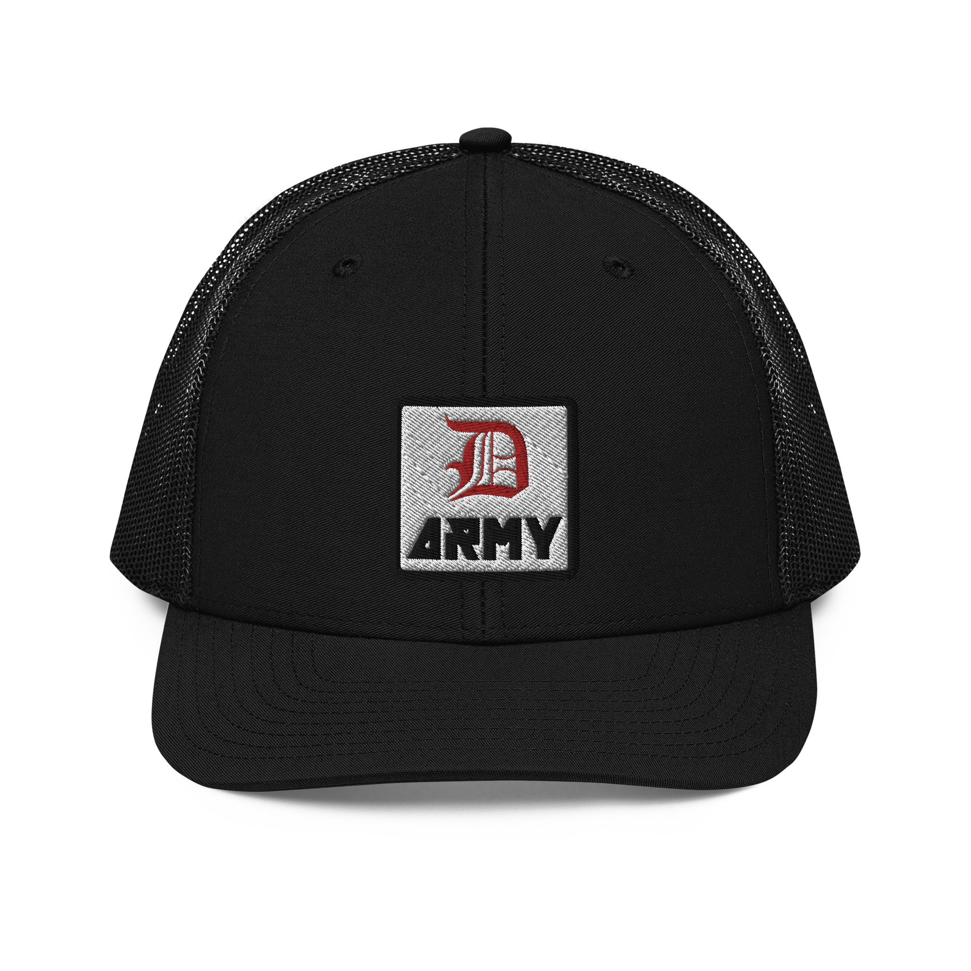 Complete your outfit with the Detroit Army embroidered trucker cap.