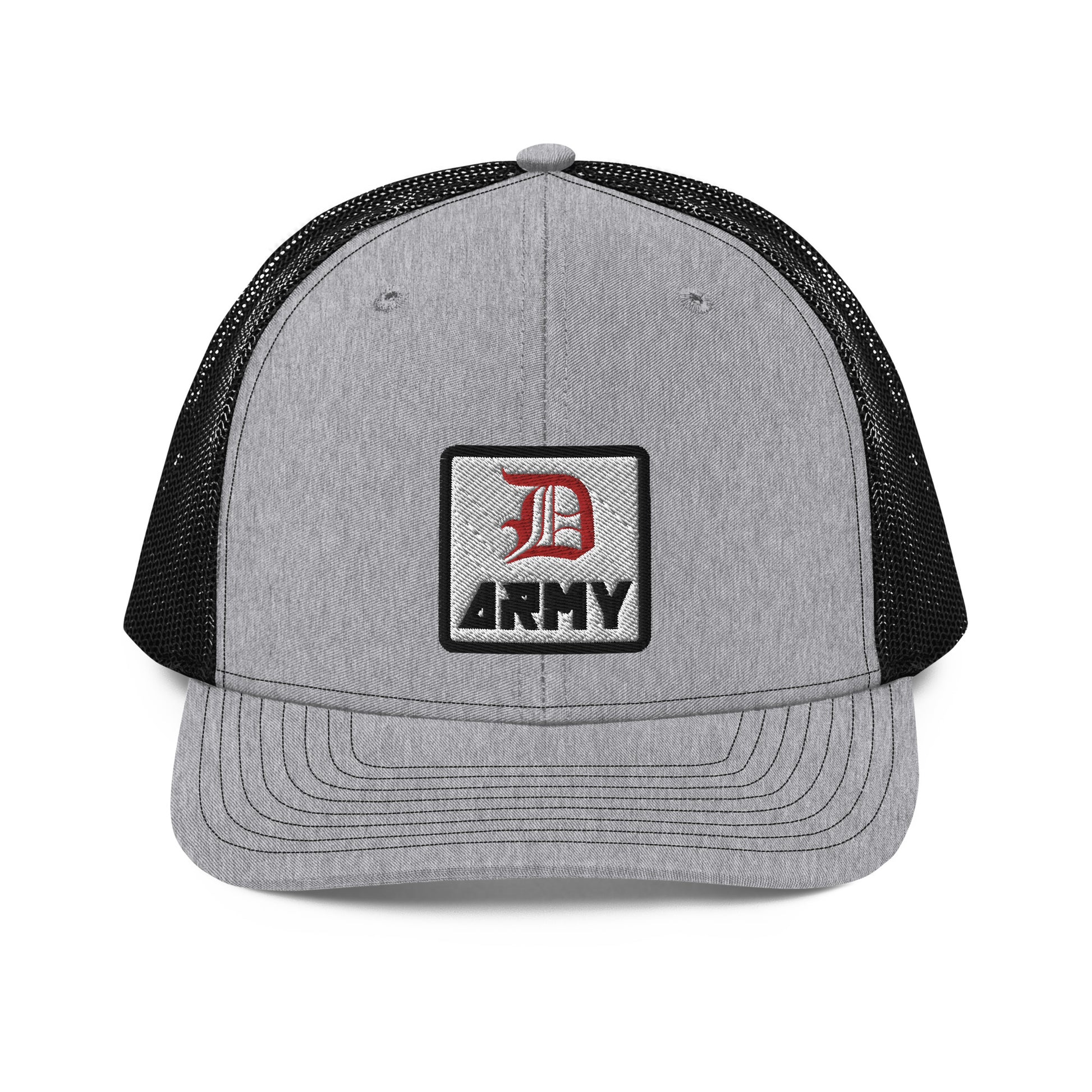 Complete your outfit with the Detroit Army embroidered trucker cap.